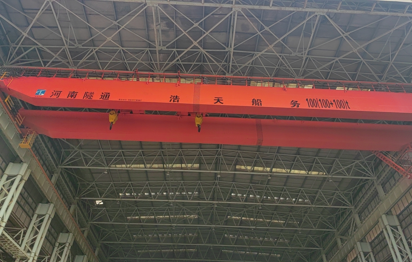QE型通用橋式起重機依據GB/T14405-2011標準所設計、制造.該型號起重機是在QD型起重機基礎上設有兩臺起重小車,其可以單獨工作,也可以聯臺動作,適用于工礦企業車間及鐵路、港口碼頭等貨場吊運長件物品。